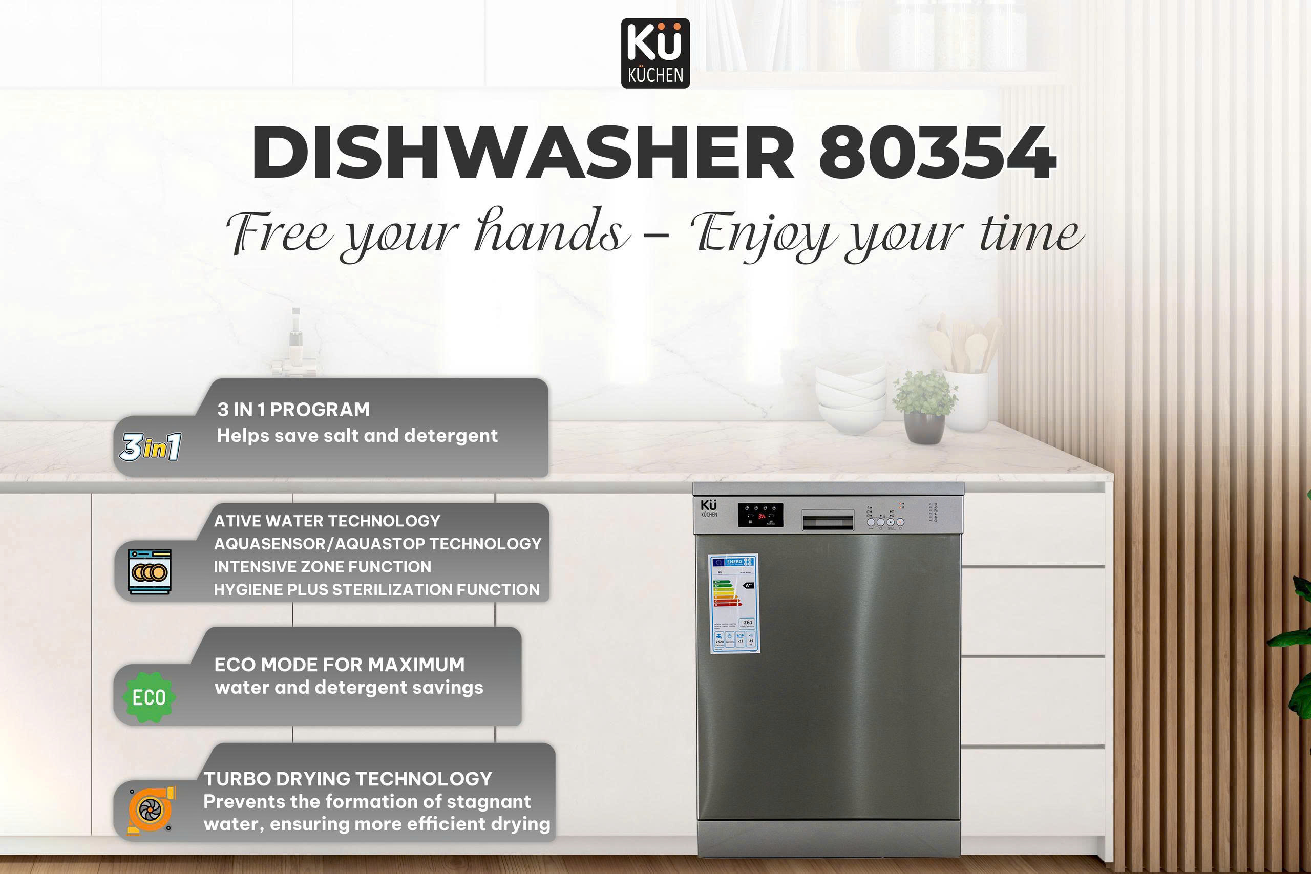 Specifically, after the hot water wash cycle ends, the dishwasher fan draws air through the heat exchanger to heat it up. The hot air is then blown strongly onto the dishes at a temperature of 60–80°C, quickly evaporating any remaining water. This process is repeated continuously during the last 30–60 minutes of the drying cycle, ensuring all items are completely dry before the cycle ends. Turbo Drying achieves fast and efficient drying in the closed dishwasher environment, delivering optimal results.
