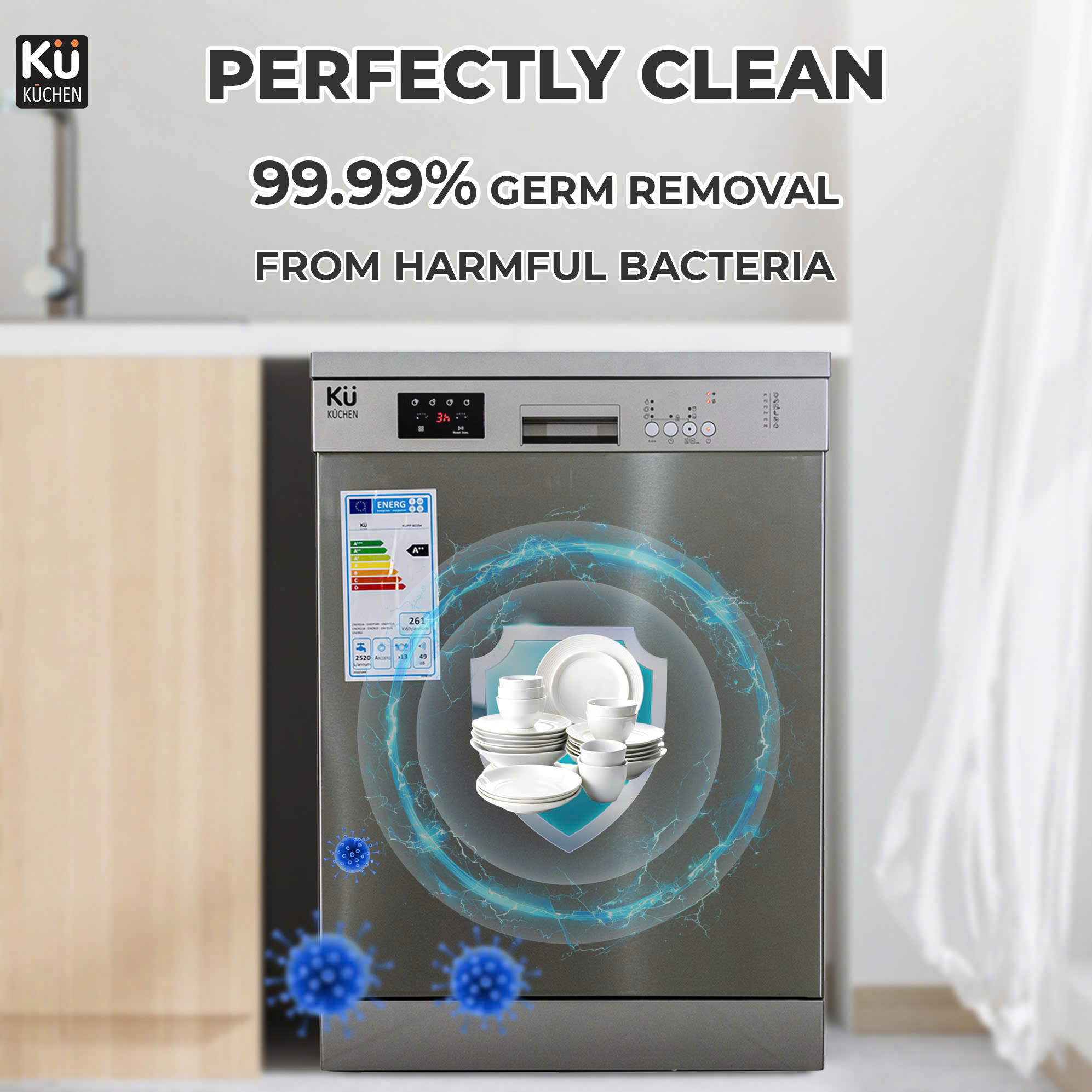 Specifically, after the hot water wash cycle ends, the dishwasher fan draws air through the heat exchanger to heat it up. The hot air is then blown strongly onto the dishes at a temperature of 60–80°C, quickly evaporating any remaining water. This process is repeated continuously during the last 30–60 minutes of the drying cycle, ensuring all items are completely dry before the cycle ends. Turbo Drying achieves fast and efficient drying in the closed dishwasher environment, delivering optimal results.