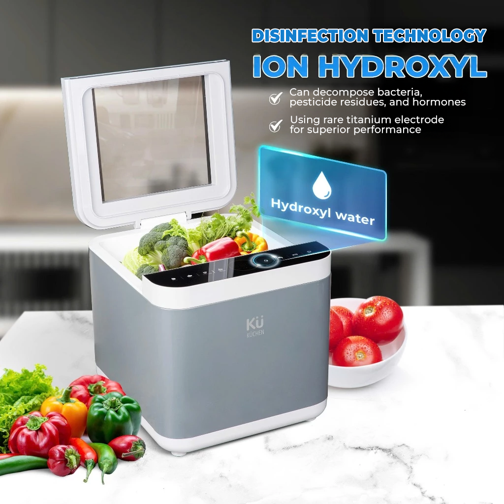 The Hydroxyl Ion sterilization technology uses only water, without adding any chemicals. Water molecules are split into hydroxyl radicals or similar reactive species by generating a large number of particles when the device is turned on. These hydroxyl radicals have strong oxidation capabilities and can effectively decompose bacteria, pesticide residues, and hormones on the surface of food.