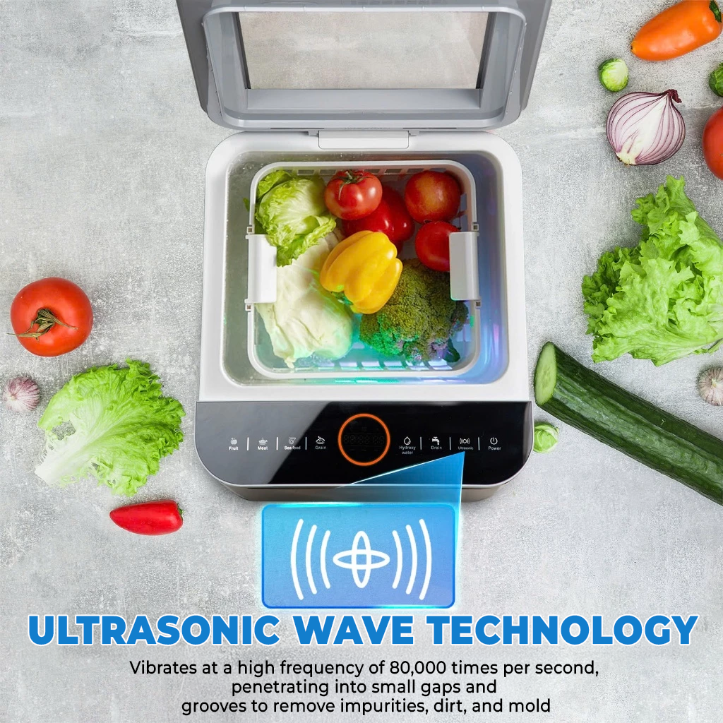 • Ultrasonic 80kHz waves generate microbubbles to deeply clean fruits, vegetables, grains, and meat.
