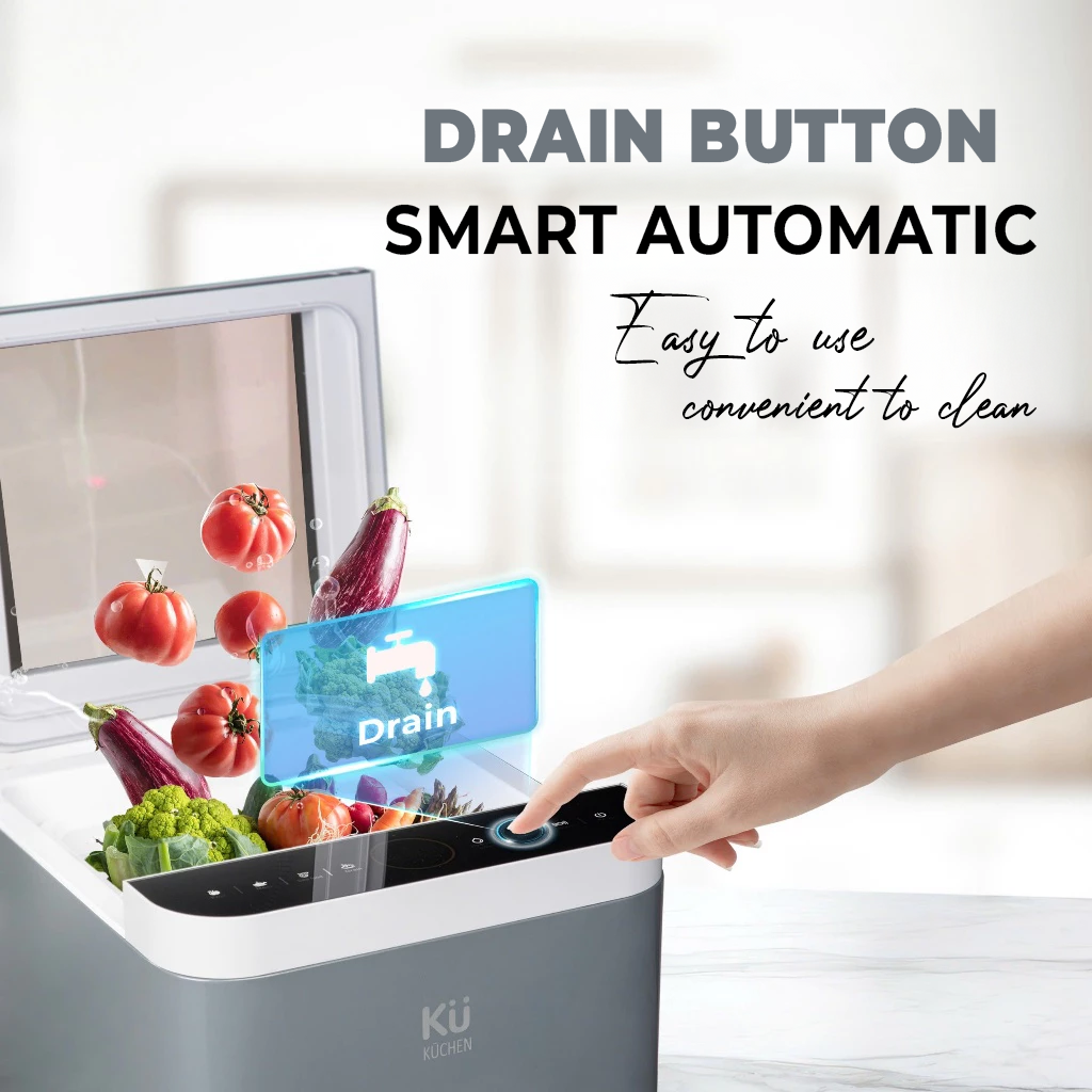 Kills bacteria and decomposes pesticide residues while using ultrasonic cleaning