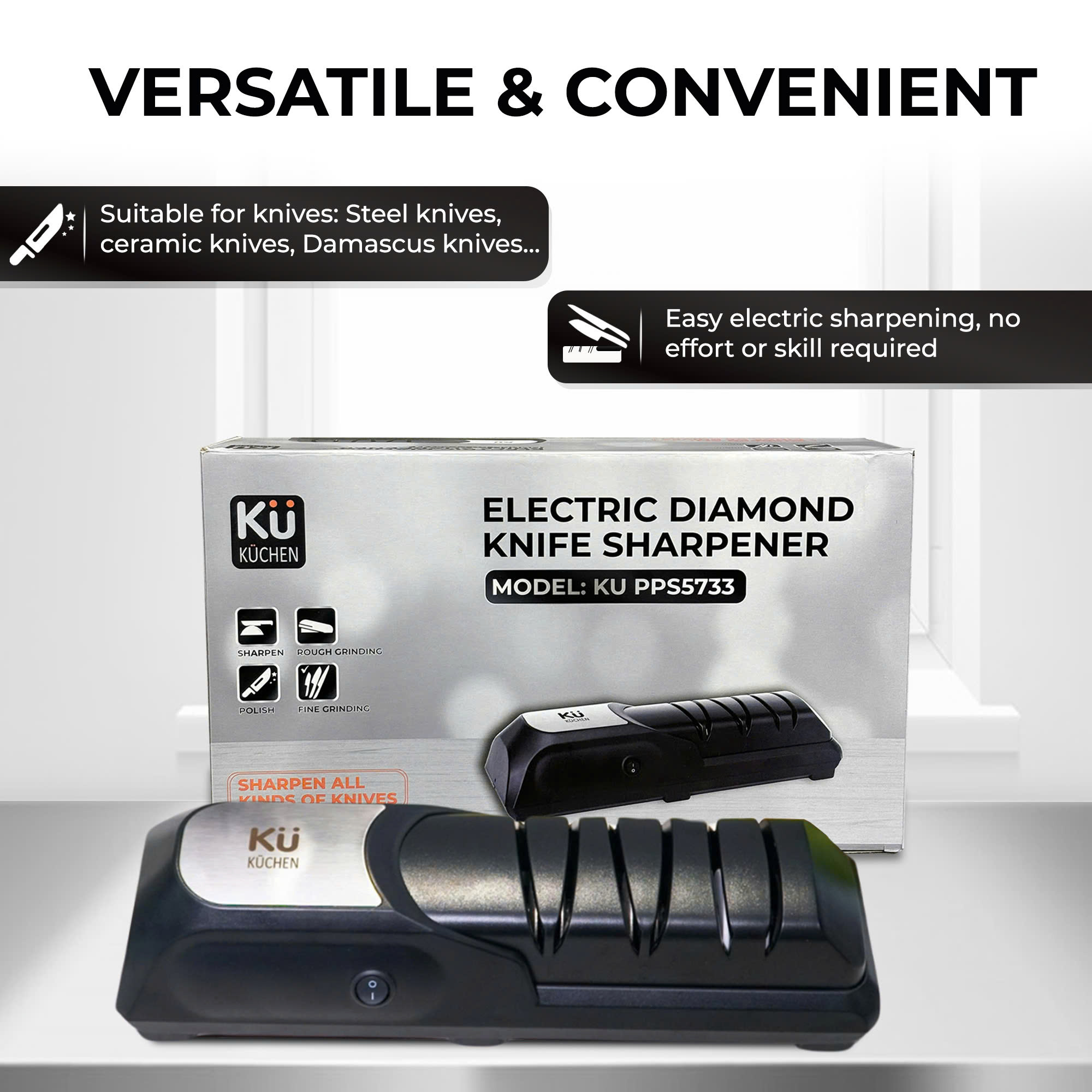 Grit sizes: 360 (coarse), 600 (fine), 1200 (polishing) – delivering outstanding sharpening efficiency, even for hard steel and ceramic knives