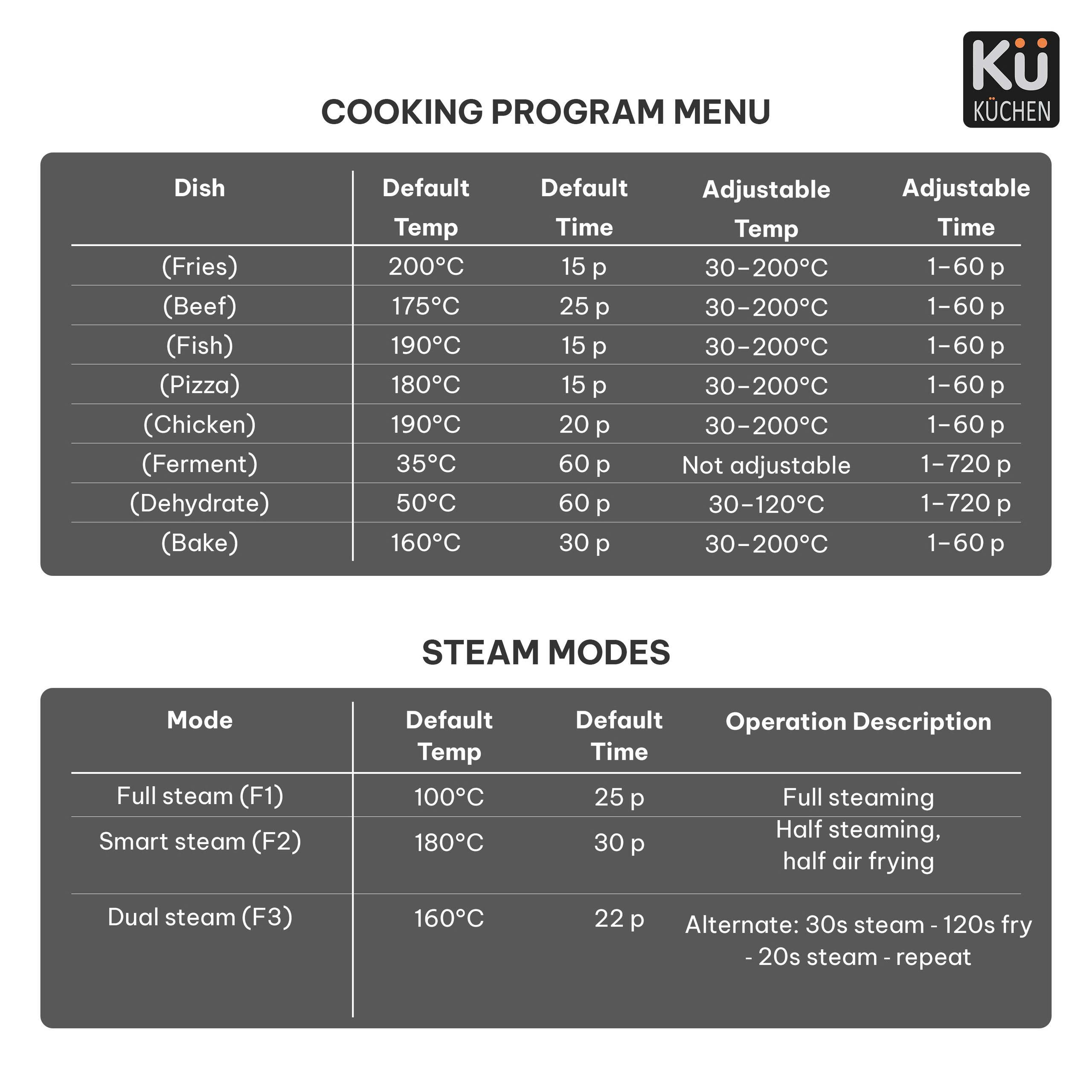 Turbo Steam Technology: Balances moisture and preserves the food’s natural flavor.