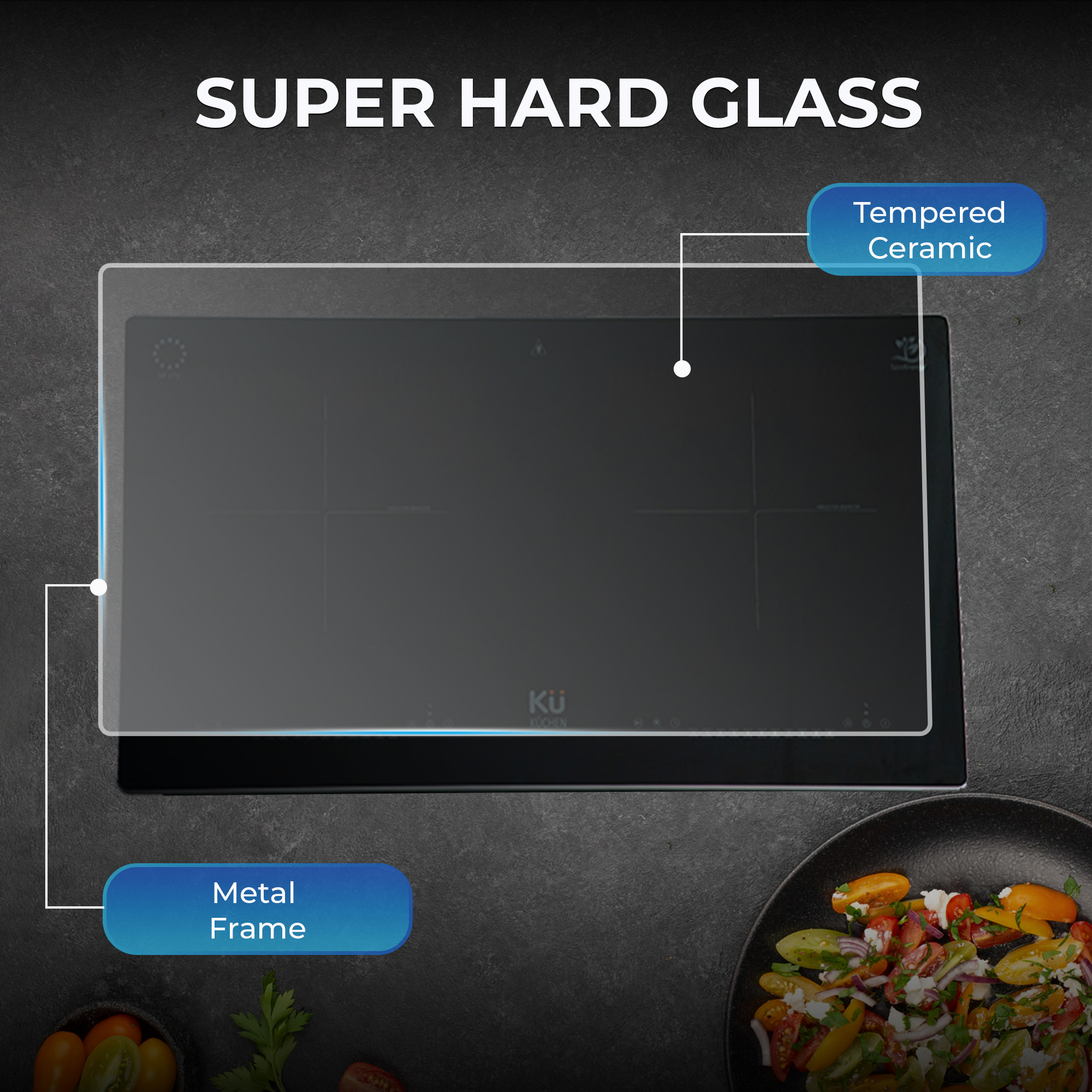 The ceramic glass of Kuchen induction hobs (MI272 & MI918) features a hydrophobic coating that resists fingerprints, grease, and dust. The smooth surface is easy to clean with a damp cloth, keeping the hob pristine and glossy.