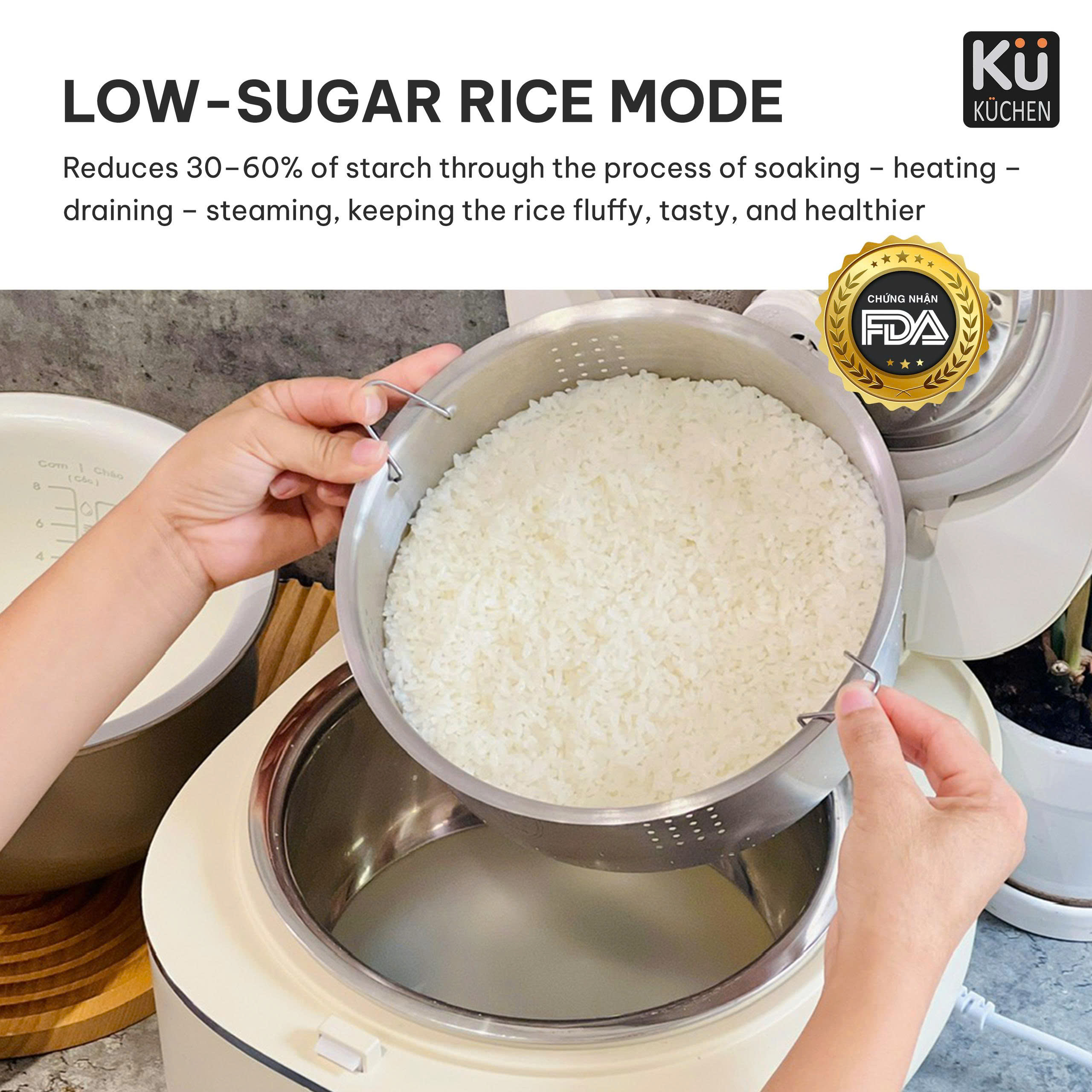 2-in-1 Function: Acts as steamer and sugar-reducing rice cooker